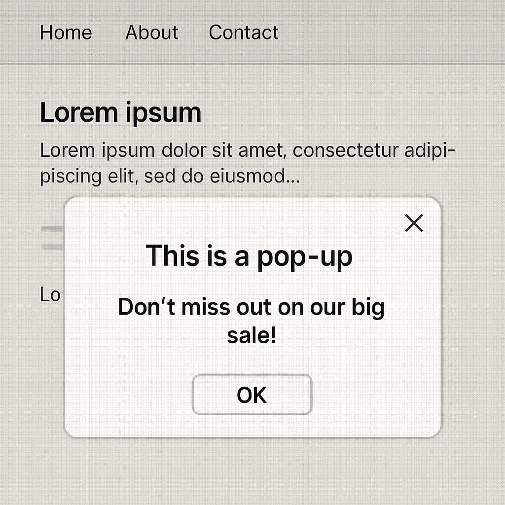 - 방문자가 특정 버튼 또는 링크를 클릭했을 때 뜨는 창