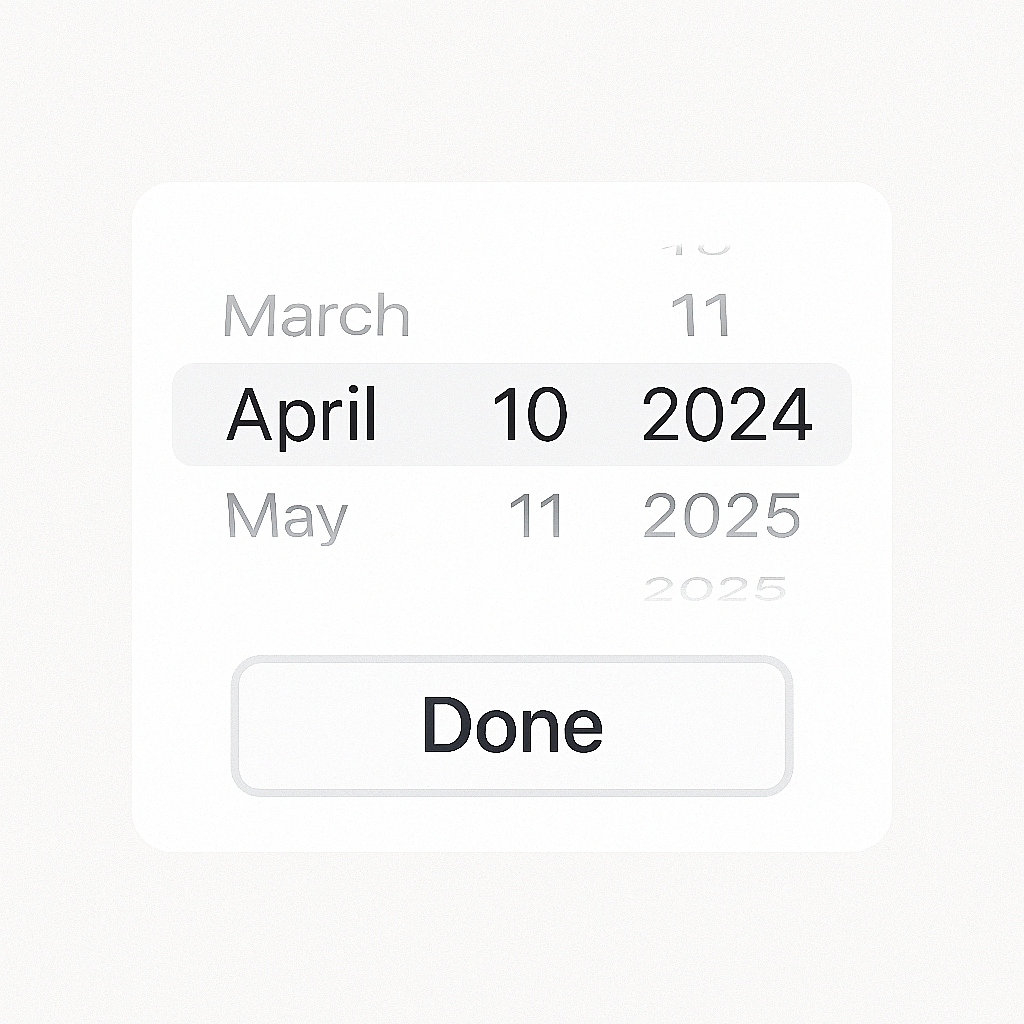날짜, 시간, 색상 등 정해진 값 중에서 하나를 선택할 수 있도록 도와주는 UI 컴포