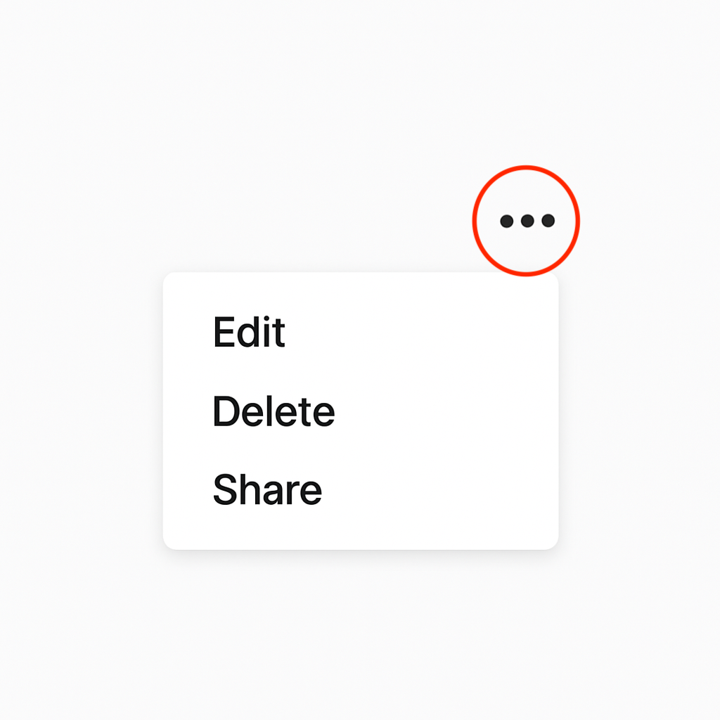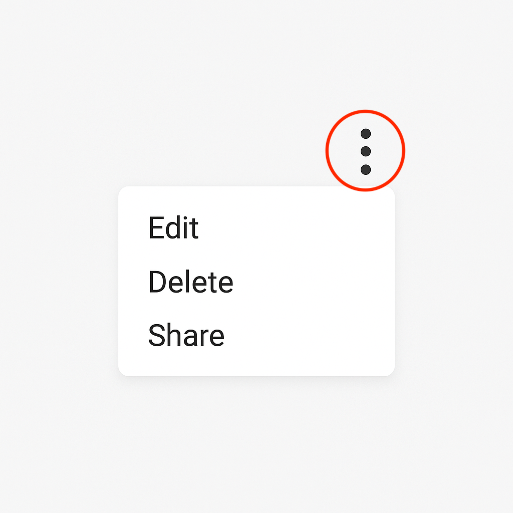 세로 점 세 개 아이콘으로, 특정 콘텐츠에 대한 추가 작업 옵션을 제공하는 버튼