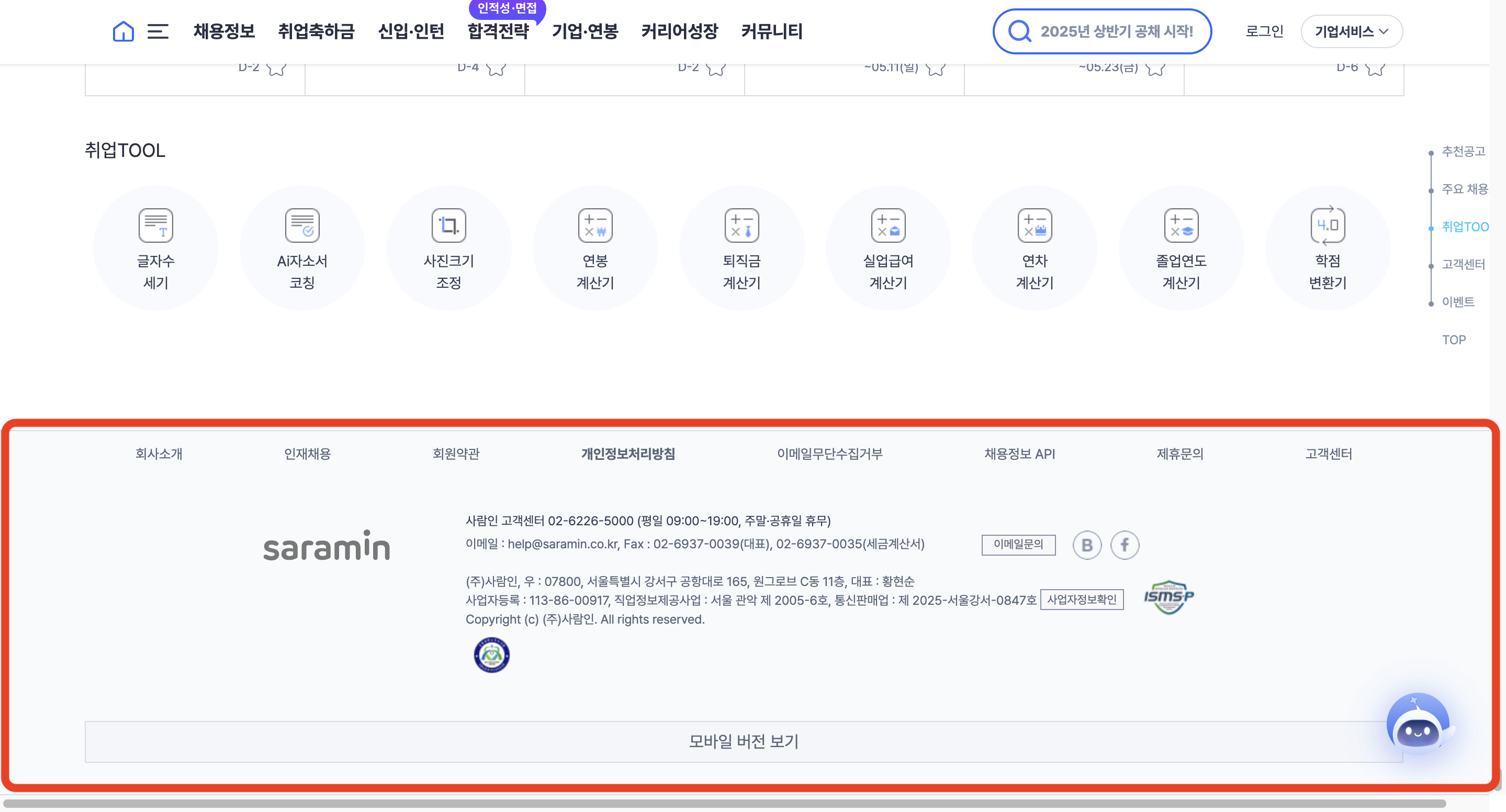 웹 페이지 하단의 정보, 정책, 약관 등이 정보성 내용이 포함되는 섹션