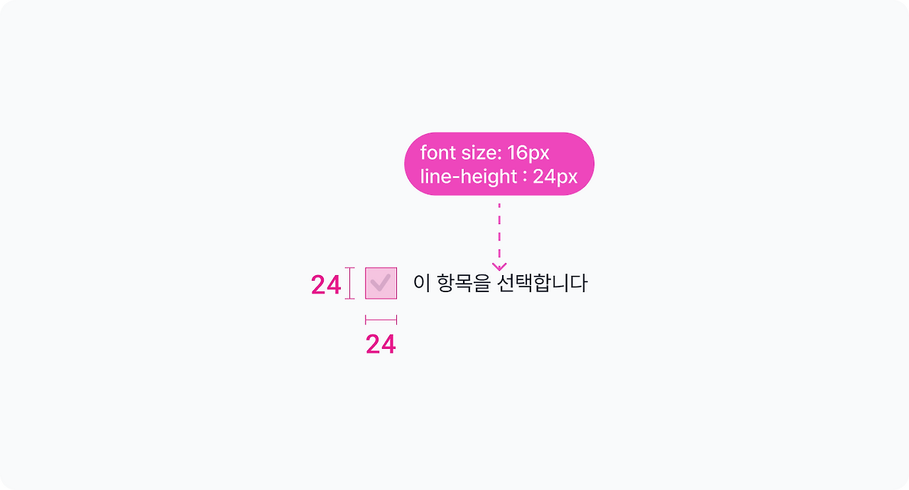 * 아이콘, 체크박스, 라디오는 24px * 24px로 디자인하는 것이 개발자/디자이너에게 모두 편리!