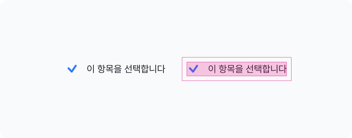 3. 컨트롤 요소의 최소 터치 영역은 라벨과 함께 잡기.